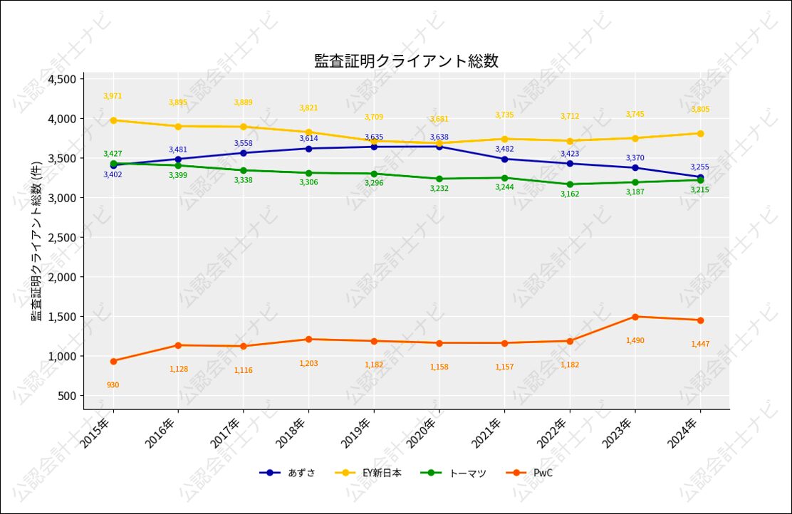 次に、四大監査法人の「クライアント数」を比較してみましょう。