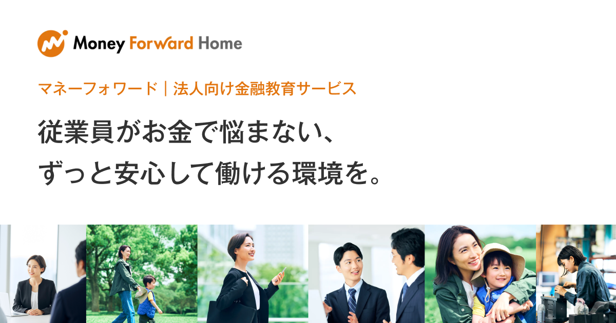 マネーフォワードホーム 法人向け金融教育サービスは、企業で働く従業員の資産形成を支援するためのセミナー、ファイナンシャルプランナーによるライフプラン設計、家計・資産管理の『マネーフォワード ME』のプレミアムサービスの提供を通じて、従業員とその家族のファイナンシャルウェルビーイングを支援します。