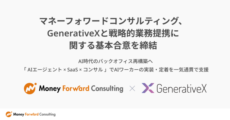 株式会社マネーフォワードのグループ会社であるマネーフォワードコンサルティング株式会社は、株式会社GenerativeXと戦略的業務提携に関する基本合意書を締結しました。