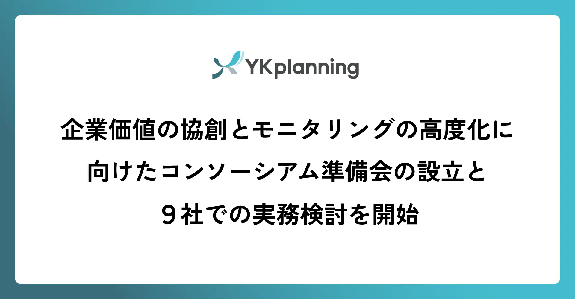 引用元:企業価値の協創とモニタリングの高度化に向けたコンソーシアム準備会の設立と9社での実務検討を開始 株式会社YKプランニングのプレスリリース