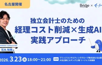 【セミナー】独立会計士のための「経理コスト削減」×「生成AI」実践アプローチ 〜「アナログな現場」と「シビアな経営層」が強いクライアントの経理をどう変えるか〜/3月23日(月)名古屋開催:ブリッジコンサルティンググループ【PR】